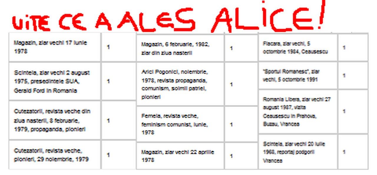 Alice, de exemplu, s-a pregătit cu daruri pentru toată familia. A avut noroc, găsind atâtea ziare din ziua nașterii. Unii nu găsesc nici măcar unul.
