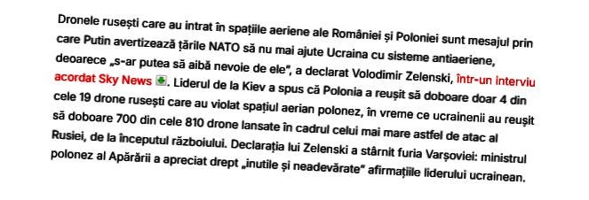 … cu precizarea că Varșovia are dreptate când spune că Zelenski minte. Polonia a doborât trei drone, nu patru! :))))